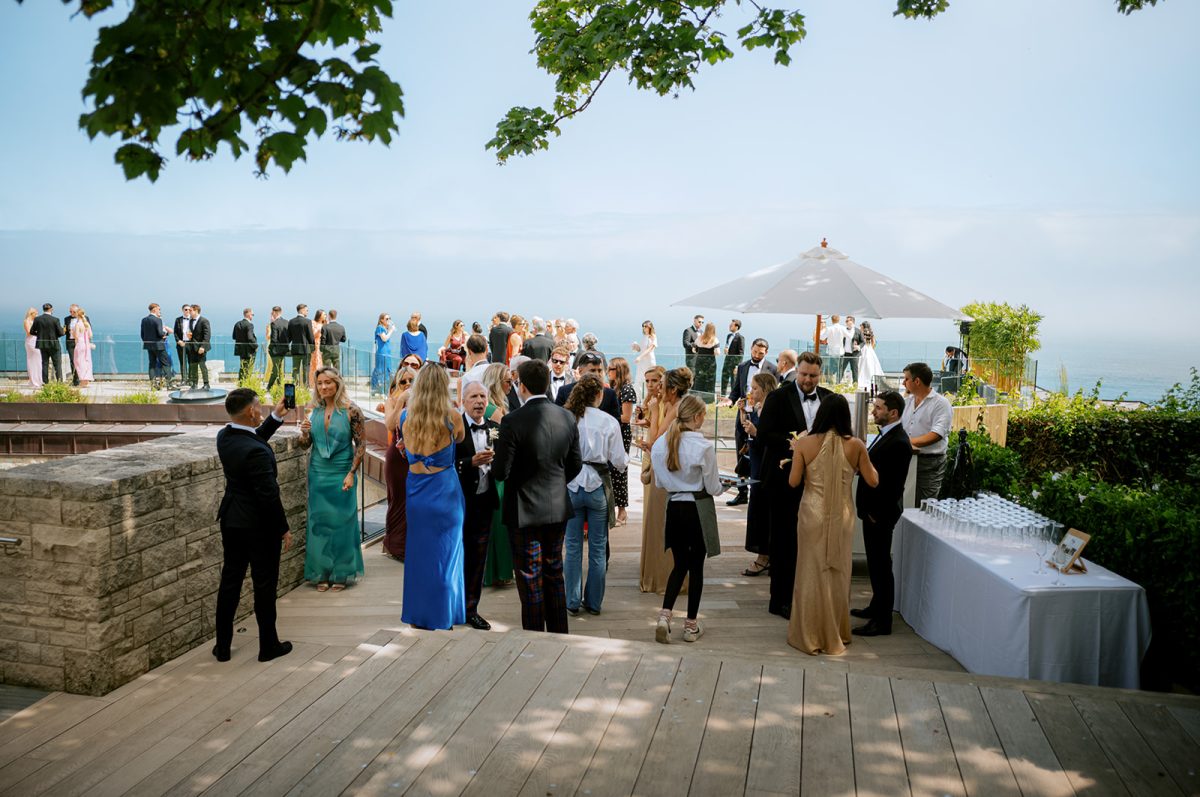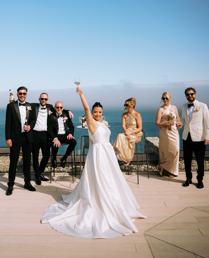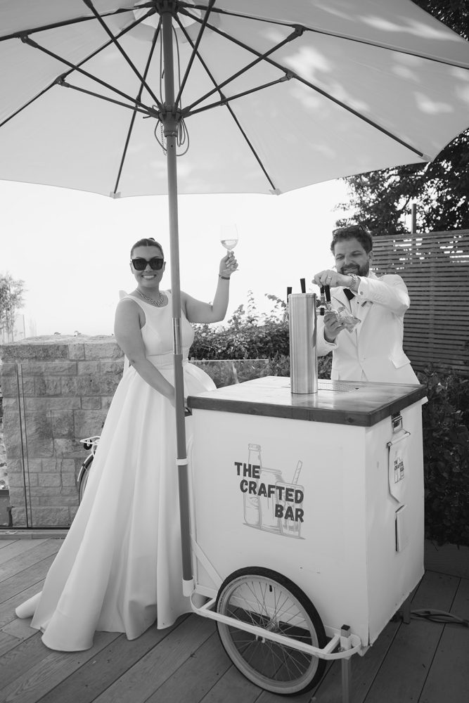 Lauren & Will made full use of their exclusive hire of the Clifftops Lodges, hosting post‑ceremony drinks on the stunning roof terrace. With sweeping sea views, space for live acoustic music, and a relaxed coastal atmosphere, it was an unforgettable setting.
