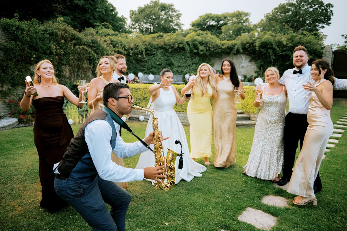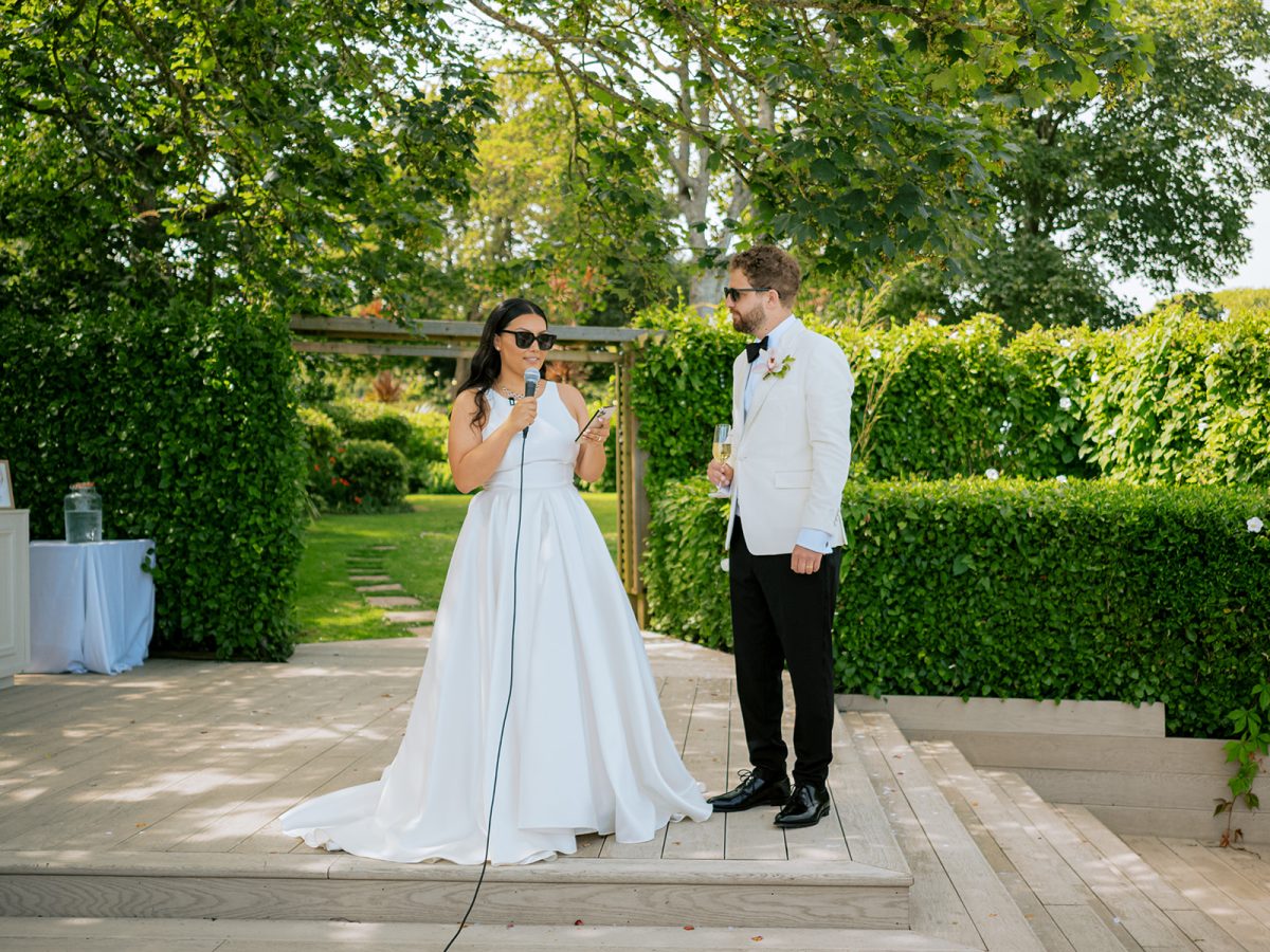 As the day flowed into evening, guests enjoyed a cocktail hour in the Italian Garden, where a sax player set the tone for relaxed celebrations, dancing on the lawn, and the cutting of the cake. The festivities then continued in the dining room, bringing the day to a beautifully memorable close.