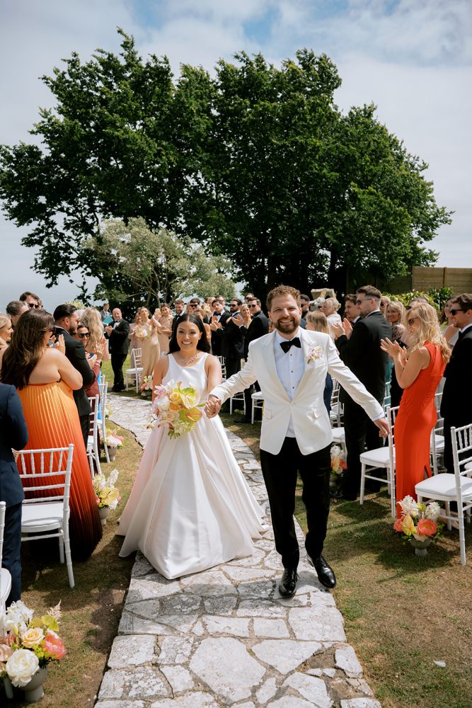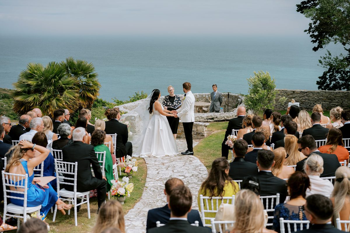 With the orangery always ready as a seamless backup, outdoor ceremonies remain a possibility whatever the season. On the day, Lauren & Will were fortunate to enjoy beautiful sunshine, hosting their ceremony at the ‘look-out’ with a stunning backdrop of the Dorset Coast.